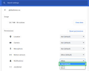 - Open site settings by copying and pasting the following into the address bar in your browser: chrome://settings/content/siteDetails?site=https://globalnews.ca