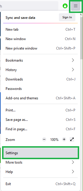 - Click on the hamburger button at the top right of the browser, and select “Settings”