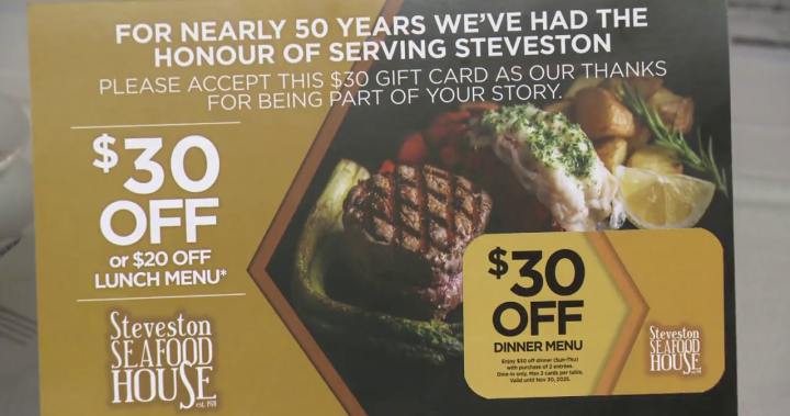 Shane Dagan, owner of the Steveston Seafood House in Richmond, said they wanted to reach out to the community with a mail campaign.