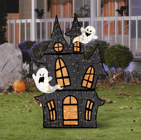 If you’re still on the hunt for adorable décor this spooky season, this 2D haunted house sign adorned with LED lights is just the thing! It sets the perfect glowing atmosphere to welcome trick-or-treaters to your door.