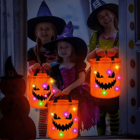 These glowing Halloween candy bags are as cute as they are handy. The LED lights will help your trick or treaters find their next sweet stop.