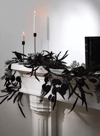 Halloween decor meets haute style—this deep black, velvety eucalyptus garland from Simons is festive while staying chic.